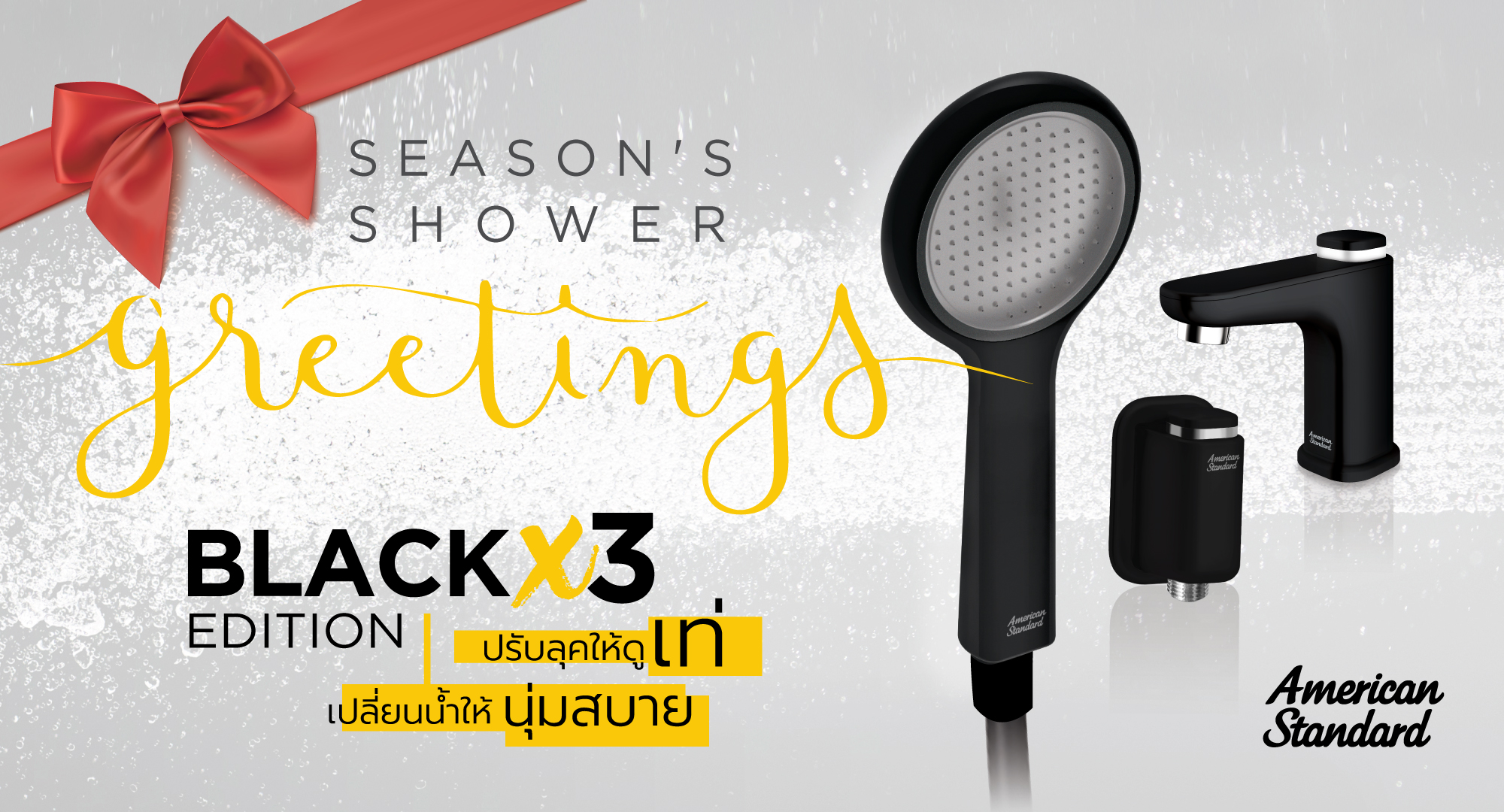 ใกล้เทศกาลส่งมอบความสุขแล้ว อเมริกันสแตนดาร์ด ประเทศไทย ขอเสนอโปรโมชั่นพิเศษสุด ชุด Black x 3 สำหรับเทศกาลคริสต์มาสนี้ โดยผู้บริโภคสามารถชอปชุด Black x 3 อันได้แก่ ชุดฝักบัว GENIE Black Edition กับก๊อกน้ำอ่างล้างหน้าและวาล์วฝักบัวรุ่น EasyFLO สีดำ ในราคาพิเศษสุด เพื่อสร้าง “แรงบันดาลใจใหม่ในห้องน้ำ” ในช่วงเทศกาลคริสต์มาสนี้ ซึ่งจะช่วยยกระดับประสบการณ์ที่ได้รับจากแบรนด์และผลิตภัณฑ์โดยรวมขึ้นไปอีกระดับ ชุดโปรโมชั่น Black x 3 นี้มีวางจำหน่ายแล้วตามร้านตัวแทนจำหน่ายผลิตภัณฑ์อเมริกันสแตนดาร์ดทั่วประเทศ