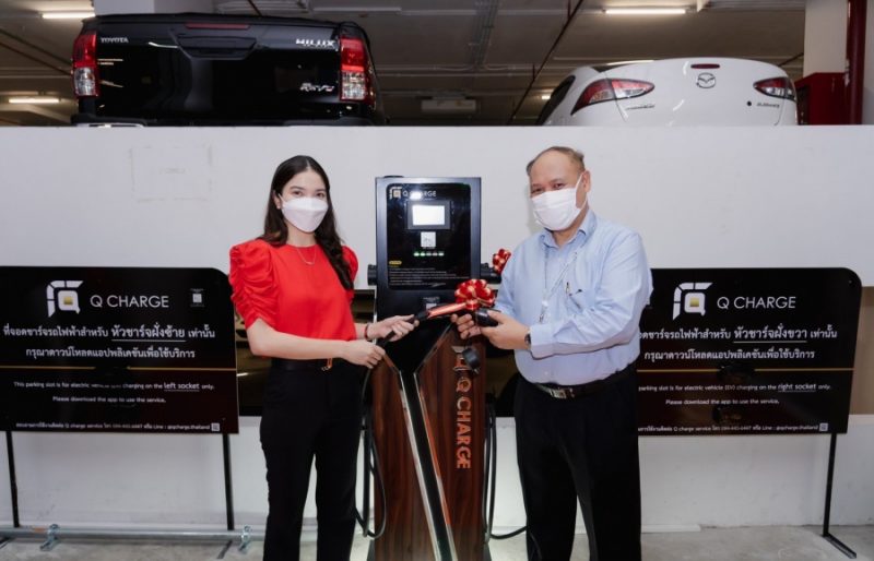 “Q Charge คือแบรนด์ธุรกิจที่เราแตกไลน์ใหม่ ขึ้นมา เพื่อให้เป็นที่รู้จักของคนทั่วไป ในฐานะสถานีชาร์จไฟฟ้า ที่จะติดตั้งอยู่ทุกอาคารในกรุงเทพฯ และ หัวเมืองต่างๆ เพื่อให้คนเห็นจนรู้สึกคุ้นชิน และ มั่นใจมากขึ้นที่จะเปลี่ยนมาใช้รถยนต์ไฟฟ้า ผลักดันแผนพัฒนา EV ของประเทศไทย ซึ่งวันนี้เราได้ติดตั้งสถานี Q Charge ไปแล้วกว่า 10 จุดในกรุงเทพฯ โดย 8 สถานีจะอยู่ในชั้นจอดรถของคอนโดมิเนียม และอีก 2 สถานีจะอยู่ในโรงพยายาล” สำหรับในอนาคต ผู้บริหารสาวย้ำอย่างหนักแน่นว่า จะติดตั้ง Q Charge ให้ได้ถึง 2500 จุด ภายในระยะเวลา 5 ปี ซึ่งก็จะรวมถึงการติดตั้งในพื้นที่ส่วนบุคคล รวมถึง ห้างสรรพสินค้า อาคารแบบไฮไรส์ และ โรงแรมด้วย