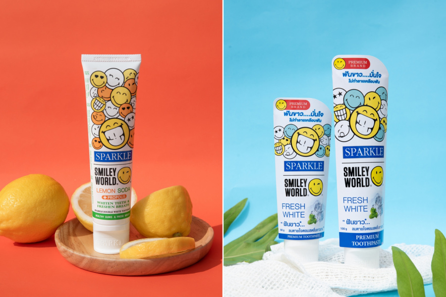 SPARKLE X SMILEYWORLD LIMITED EDITION ยาสีฟันคอลเล็กชันพิเศษ สูตร Fresh White และ Lemon Soda