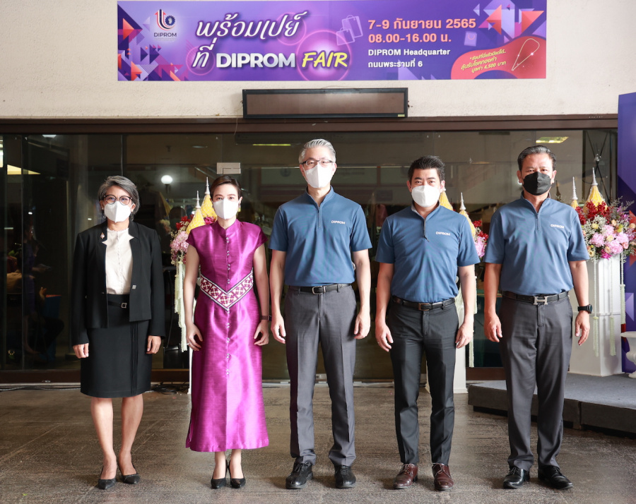 กรุงเทพ 7 กันยายน 2565 – ดร.ณัฐพล รังสิตพล อธิบดีกรมส่งเสริมอุตสาหกรรม (ที่ 3 จากซ้าย) นำทีมผู้บริหารกรมส่งเสริมอุตสาหกรรม หรือ ดีพร้อม (DIPROM) เปิดมหกรรมพร้อมเปย์ ที่ DIPROM FAIR เพื่อสร้างโอกาสในการเข้าถึงตลาดสำหรับผู้ประกอบการเงินทุนหมุนเวียนเพื่อการส่งเสริมอุตสาหกรรมในครอบครัวหัตถกรรมไทย ระหว่างวันที่ 7-9 กันยายนนี้ ตั้งแต่เวลา 08.00 – 16.00 น. ณ DIPROM Headquarter ถ.พระราม 6