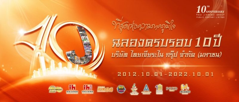 ที่สุดแห่งความภาคภูมิใจของบริษัท ไทยเจียระไน กรุ๊ป จำกัด (มหาชน) เดินหน้าก้าวสู่ปีที่ 10 ในวันที่ 1 ตุลาคม พ.ศ. 2565 ด้วยความยิ่งใหญ่ นำโดยคุณหลุ่ย แซ่กั๊ว ประธานกรรมการบริหารใหญ่ของบริษัท ไทยเจียระไนกรุ๊ป จำกัด (มหาชน) ตลอดระยะเวลา10 ปีที่ผ่านมา บริษัท ไทยเจียระไนกรุ๊ป จำกัด (มหาชน) ยืนหยัดในการเผยแพร่ข้อมูลทางบวก เป็นกลาง และถูกต้อง ส่งเสริมความสัมพันธ์ไทย-จีน ใช้พลังอิทธิพลของสื่อในการเป็นกระบอกเสียงที่สำคัญและที่พึ่งให้แก่ชาวจีนในต่างแดน ส่งต่อและเผยแพร่วัฒนธรรมที่ดีงามของไทย เป็นช่องทางสำคัญของความร่วมมือฉันมิตรระหว่างไทย-จีน และเป็นบริษัทแบบอย่างที่ผสมผสานความต่างวัฒนธรรมที่ดีเยี่ยมในสมัยใหม่