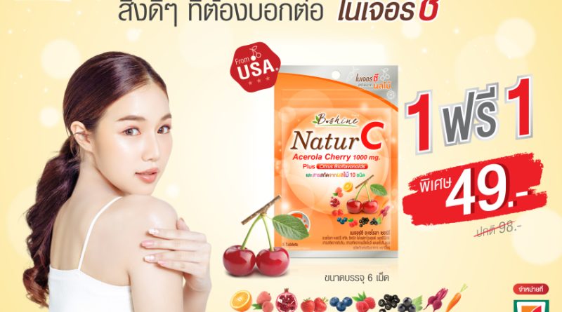 บริษัท บีไชน์ นูทริชั่น พลัส จำกัด ผู้จัดจำหน่าย “บีไชน์ เนเจอร์ซี” วิตามินซีธรรมชาติ 100% ได้จัดโปรโมชั่นราคาพิเศษ “บีไชน์ เนเจอร์ซี” แบบซองพกพาสะดวก ขนาด 6 เม็ด ซื้อ 1 แถม 1 เพียง 49 บาท จากปกติ ราคา 98 บาท ซื้อได้ตั้งแต่วันนี้ – 23 กุมภาพันธ์ 2566 ที่ร้านเซเว่น อีเลฟเว่น ทั่วประเทศ