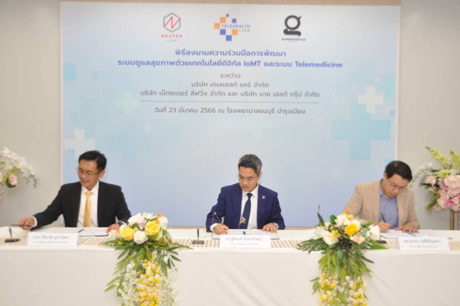 ดร.ฐิติพงศ์ นันทาภิวัฒน์ กรรมการ บริษัท เทเลเฮลท์ แคร์ จำกัด ในเครือ บมจ. ธนบุรี เฮลท์แคร์ กรุ๊ป (THG) เปิดเผยว่า บริษัทฯ ได้ลงนามบันทึกข้อตกลงความร่วมมือกับ บริษัท เน็กซเตอร์ ลีฟวิ่ง จำกัด และ บริษัท มาย เฮลท์ กรุ๊ป จำกัด โดยมีเป้าหมายสำคัญในความร่วมมือระหว่าง 3 ภาคี คือ การพัฒนาต่อยอดอุปกรณ์ IoMT ทางการแพทย์สำหรับดูแลติดตามสุขภาพเบื้องต้นของผู้รับบริการ และพัฒนาระบบ Telemedicine ให้สามารถเชื่อมต่ออุปกรณ์ IoMT ได้อย่างสมบูรณ์แบบยิ่งขึ้น ซึ่งผู้รับบริการจะได้ประโยชน์ด้านการดูแลติดตาม รักษา คัดกรองอาการ ที่สะดวกรวดเร็ว และในขณะเดียวกันก็ช่วยเพิ่มประสิทธิภาพการทำงานให้กับบุคลากรทางการแพทย์ให้สามารถดูแล ติดตามปัญหาผู้ป่วยกรณีฉุกเฉินได้ทันท่วงที และความร่วมมือทั้ง 3 ภาคีในครั้งนี้ถือเป็นอีกหนึ่งการยกระดับคุณภาพการบริการครั้งสำคัญให้กับอุตสาหกรรมเฮลท์แคร์ในอนาคต