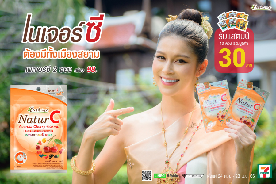 บริษัท บีไชน์ นูทริชั่น พลัส จำกัด จัดโปรพิเศษ “บีไชน์ เนเจอร์ซี” ร่วมแคมเปญ “แสตมป์เซเว่น อีเลฟเว่นป่วนสนุก BROWN & MINIONS” ที่มาพร้อมการ์ตูนคาแรคเตอร์ มีเอกลักษณ์เฉพาะตัว น่ารักปนซ่าส์ สนุกสนาน มีเสน่ห์ อ่อนโยน สไตล์บราวน์และมินเนี่ยน เมื่อซื้อ “บีไชน์ เนเจอร์ซี” วิตามินซีธรรมชาติ 100 % แบบซองพกพาสะดวก ขนาด 6 เม็ด 2 ซอง ราคา 98 บาท รับแสตมป์มูลค่า 3 บาท จำนวน 10 ดวง รวมมูลค่า 30 บาท สามารถซื้อ “บีไชน์ เนเจอร์ซี” ราคาดี คุ้มมากพร้อมรับแสตมป์ ได้ตั้งแต่วันนี้ – 23 พฤศจิกายน 2566 ที่ร้านเซเว่น อีเลฟเว่น ทุกสาขาทั่วประเทศ