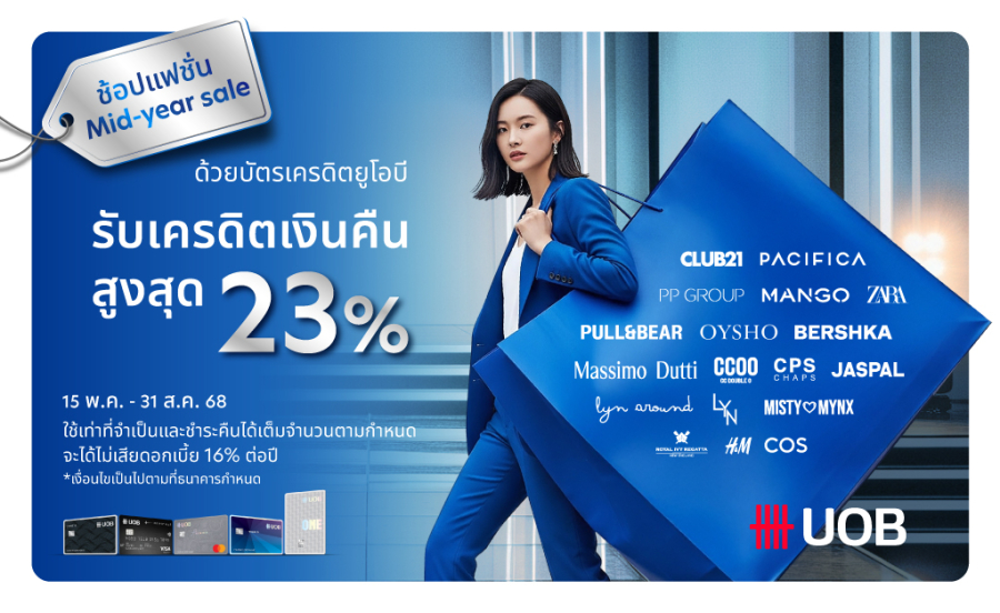 สไตล์ต้องมา เงินคืนก็ต้องมี! UOB จับมือ 40 แบรนด์แฟชั่นชั้นนำ มอบเครดิตเงินคืนรวมสูงสุด 23%