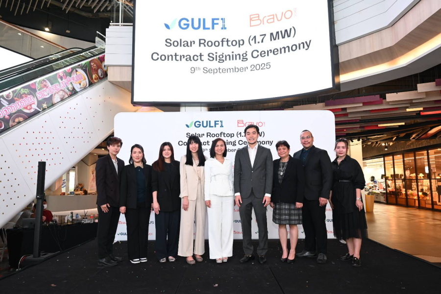 พิธีลงนามจัดขึ้นในวันที่ 9 กันยายน 2568 ณ ลานกิจกรรม Atrium ชั้น 1 ศูนย์การค้า Bravo BKK โดยมี คุณโกห์ ซู ซิง ประธานเจ้าหน้าที่บริหาร บริษัท บราโว บีเคเค จำกัด, คุณเลวี่ ลี ประธานเจ้าหน้าที่ดูแลประสบการณ์ลูกค้า บริษัท บราโว บีเคเค จำกัด, คุณอำนวยพร ประกอบนพเก้า กรรมการผู้จัดการ บริษัท กัลฟ์1 จำกัด และ คุณนิธิพร โปษณเจริญ ผู้ช่วยผู้อำนวยการฝ่ายการขาย บริษัท กัลฟ์1 จำกัด ร่วมลงนามในสัญญาโครงการ “Gulf1 x Bravo BKK Solar Rooftop” เดินหน้าติดตั้งระบบผลิตไฟฟ้าจากพลังงานแสงอาทิตย์บนหลังคาของศูนย์การค้า Bravo BKK เพื่อขับเคลื่อนนโยบายด้านความยั่งยืนของทั้งสององค์กรในการใช้พลังงานสะอาด ย้ำจุดยืนในการเป็นศูนย์การค้าที่ผสานนวัตกรรมเข้ากับความรับผิดชอบต่อสิ่งแวดล้อม