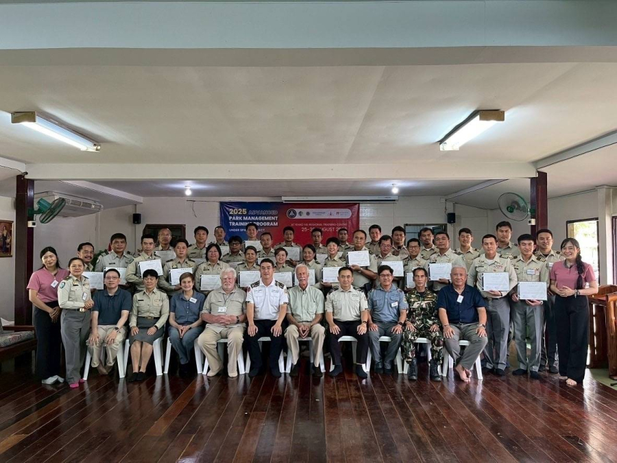 และในวันที่ 30 สิงหาคม 2568 วันสุดท้ายของการอบรม ทางโครงการได้รับเกียรติจาก คุณอรรถพล เจริญชันษา อธิบดีกรมอุทยานแห่งชาติ สัตว์ป่า และพันธุ์พืช เดินทางมาร่วมรับฟังรายงานสรุปผล การมอบประกาศนียบัตร และ “เข็มผู้นำเพื่อการเปลี่ยนแปลง” พร้อมกล่าวโอวาทอันทรงคุณค่า เพื่อเป็นการสร้างแรงบันดาลใจและกำลังใจให้แก่ผู้เข้าอบรมทุกคน”